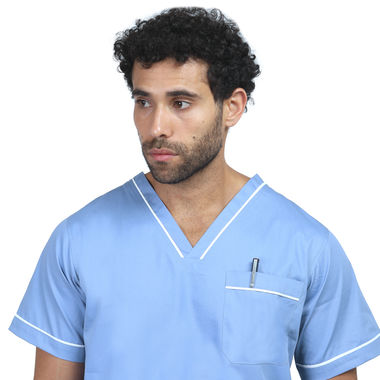 V neck Scrub top with 1 top pocket and 2 side slit pockets